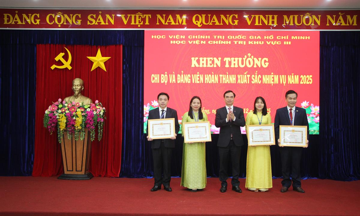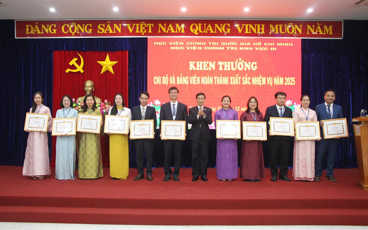 Ghi nhận những nỗ lực của các tập thể, cá nhân đã không ngừng phấn đấu, giữ vững kỷ cương, tinh thần trách nhiệm và ý chí vượt khó trong năm công tác 2025, Học viện đã trao tặng danh hiệu thi đua cơ sở 2025, khen thưởng các chi bộ, đảng viên hoàn thành xuất sắc nhiệm vụ năm 2025. Những thành tích được vinh danh không chỉ phản ánh kết quả lao động bền bỉ của từng tập thể, từng cán bộ, đảng viên mà còn góp phần lan tỏa tinh thần thi đua, tạo động lực mới để toàn Học viện tiếp tục phát huy truyền thống, nâng cao chất lượng công tác và hoàn thành tốt hơn nữa nhiệm vụ chính trị trong thời gian tới.