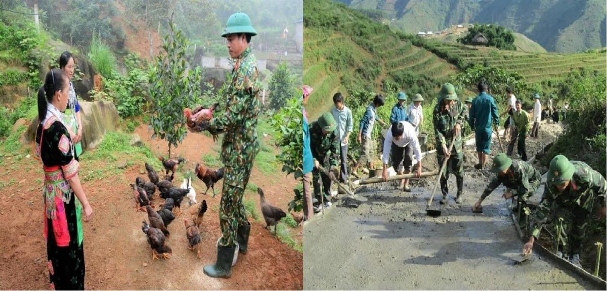 Bộ đội giúp dân làm đường, xây nhà tạm và hướng dẫn bà con làm kinh tế.