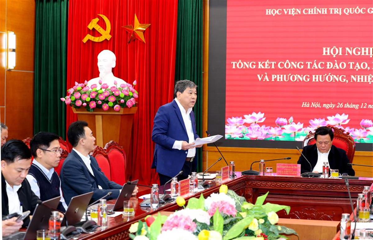 Đồng chí Ủy viên Bộ Chính trị, Giám đốc Học viện yêu cầu cần chủ động triển khai hiệu quả kế hoạch đào tạo, bồi dưỡng năm 2026 thích ứng với bối cảnh mới; tăng cường kiểm tra, giám sát việc thực hiện đổi mới các chương trình đào tạo, bồi dưỡng và thực hiện nghiêm kỷ luật, kỷ cương giảng dạy học tập, bảo đảm chất lượng đào tạo, bồi dưỡng trong toàn hệ thống Học viện. Mở rộng quy mô, chiều sâu hợp tác quốc tế trong hoạt động đào tạo, bồi dưỡng; đặc biệt cụ thể hóa nội dung “gắn kết chiến lược” trong đào tạo, bồi dưỡng với Đảng, Nhà nước Lào.