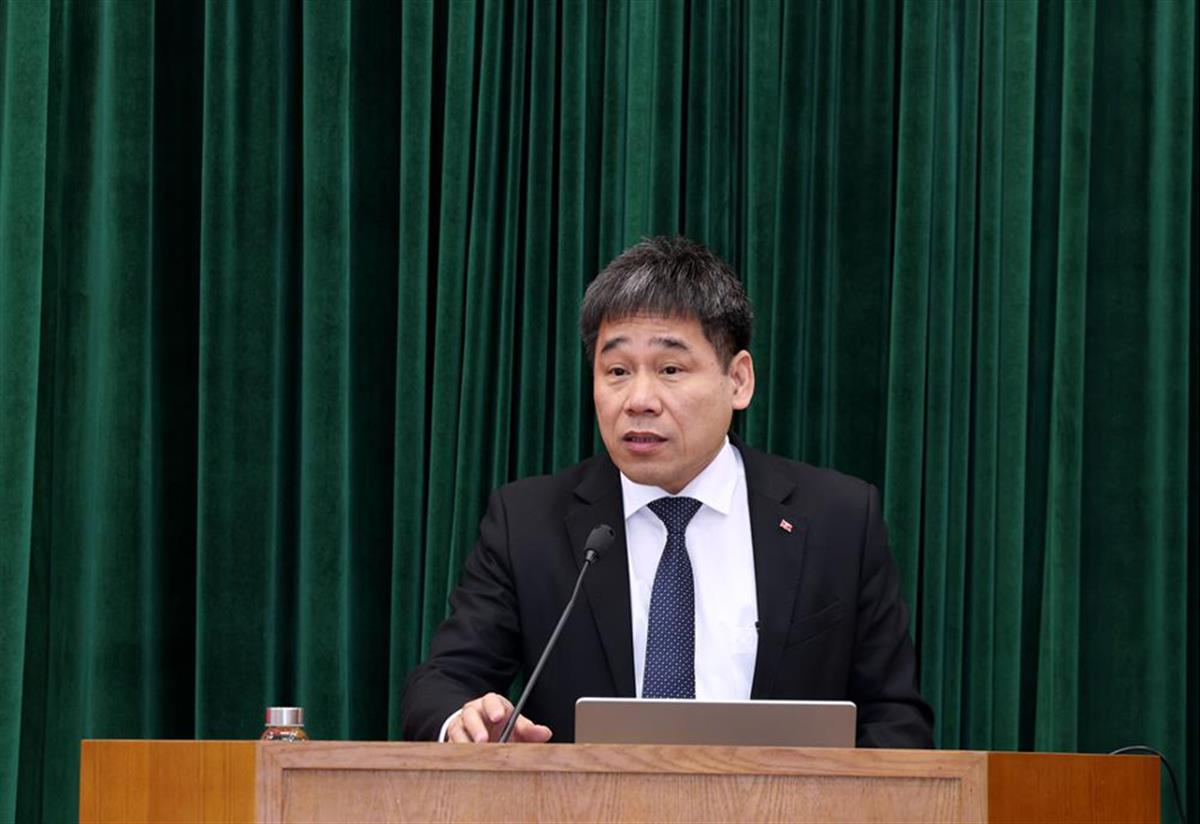 TS Đậu Tuấn Nam, Vụ trưởng Vụ Quản lý đào tạo, bồi dưỡng báo cáo tại Hội nghị
