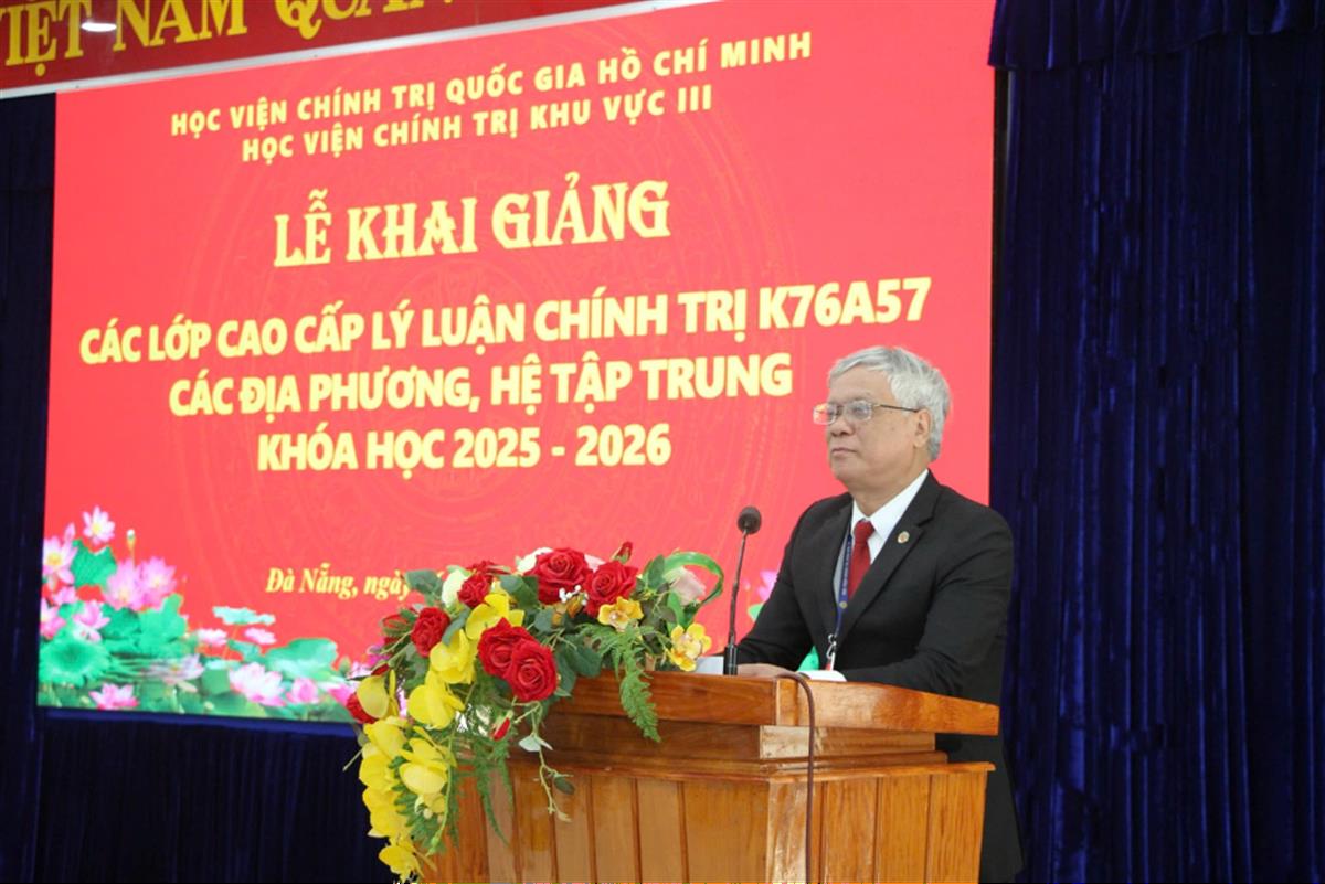 Phát biểu khai giảng, PGS, TS Lê Văn Đính, Phó Giám đốc Học viện Chính trị khu vực III chúc mừng 67 học viên trúng tuyển và chính thức tham gia khóa học. Đồng chí nhấn mạnh, khóa học được tổ chức trong bối cảnh đất nước đang đẩy mạnh tinh gọn bộ máy, đổi mới mô hình chính quyền địa phương hai cấp, thúc đẩy khoa học - công nghệ và chuyển đổi số, hội nhập quốc tế sâu rộng, đồng thời chuẩn bị Đại hội đại biểu toàn quốc lần thứ XIV của Đảng. Nhằm đáp ứng tình hình mới của đất nước, từ ngày 29/8/2025 Ban Chấp hành Trung ương đã ban hành Quy định số 350-QĐ/TW về đối tượng, tiêu chuẩn và phân cấp đào tạo Cao cấp lý luận chính trị. Chương trình khóa học gồm 19 môn học và 6 chuyên đề ngoại khóa, nhằm trang bị cho học viên những tri thức cơ bản, hệ thống về chủ nghĩa Mác - Lênin, tư tưởng Hồ Chí Minh; đường lối, chủ trương của Đảng, chính sách, pháp luật của Nhà nước; các kiến thức nền tảng về khoa học chính trị, khoa học lãnh đạo, quản lý; đồng thời nâng cao năng lực bảo vệ nền tảng tư tưởng của Đảng, đấu tranh phản bác các quan điểm sai trái, thù địch theo tinh thần Nghị quyết số 35-NQ/TW ngày 22/10/2018 của Bộ Chính trị.