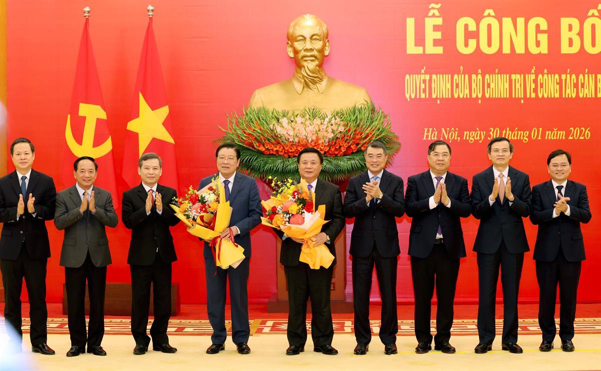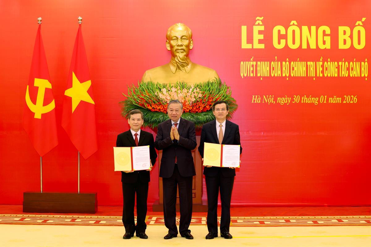 (HCMA3) - Chiều 30/1/2026, tại Trụ sở Trung ương Đảng, Tổng Bí thư Tô Lâm chủ trì Lễ công bố và trao Quyết định của Bộ Chính trị phân công, bổ nhiệm đồng chí Đoàn Minh Huấn, Uỷ viên Bộ Chính trị, Phó Giám đốc thường trực Học viện Chính trị quốc gia Hồ Chí Minh giữ chức Giám đốc Học viện Chính trị quốc gia Hồ Chí Minh; Phó Trưởng ban Chỉ đạo Trung ương về bảo vệ nền tảng tư tưởng của Đảng, đấu tranh phản bác các quan điểm sai trái, thù địch trong tình hình mới; Phó Trưởng ban Chỉ đạo Tổng kết một số vấn đề lý luận và thực tiễn về công tác đổi mới theo định hướng xã hội chủ nghĩa trong 40 năm qua ở Việt Nam.