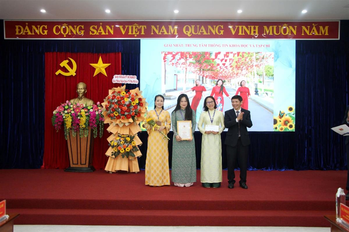 Nhân dịp này, Ban Tổ chức đã tiến hành trao giải Cuộc thi ảnh “Rạng rỡ sắc xuân” - một hoạt động sôi nổi, ý nghĩa do Ban Vì sự tiến bộ của phụ nữ Học viện tổ chức, thu hút 19 tác phẩm tập thể và 31 tác phẩm cá nhân, ghi lại những khoảnh khắc duyên dáng, bản lĩnh của cô, trò Học viện.