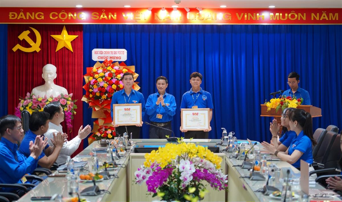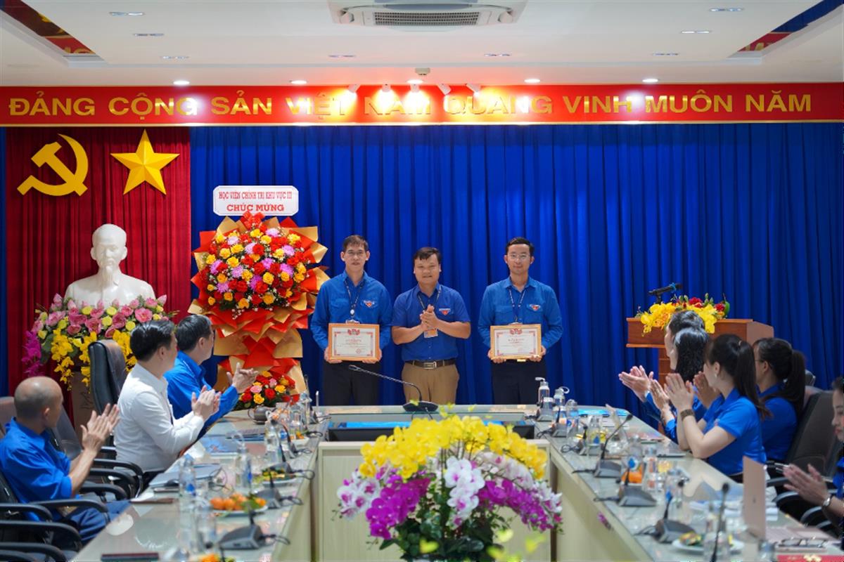 Nhân dịp này, Ban Chấp hành Đoàn Thanh niên Học viện tổ chức trao bằng khen, giấy khen của Đoàn cấp trên cho tập thể và các cá nhân có thành tích xuất sắc trong công tác Đoàn và phong trào thanh niên năm 2025.