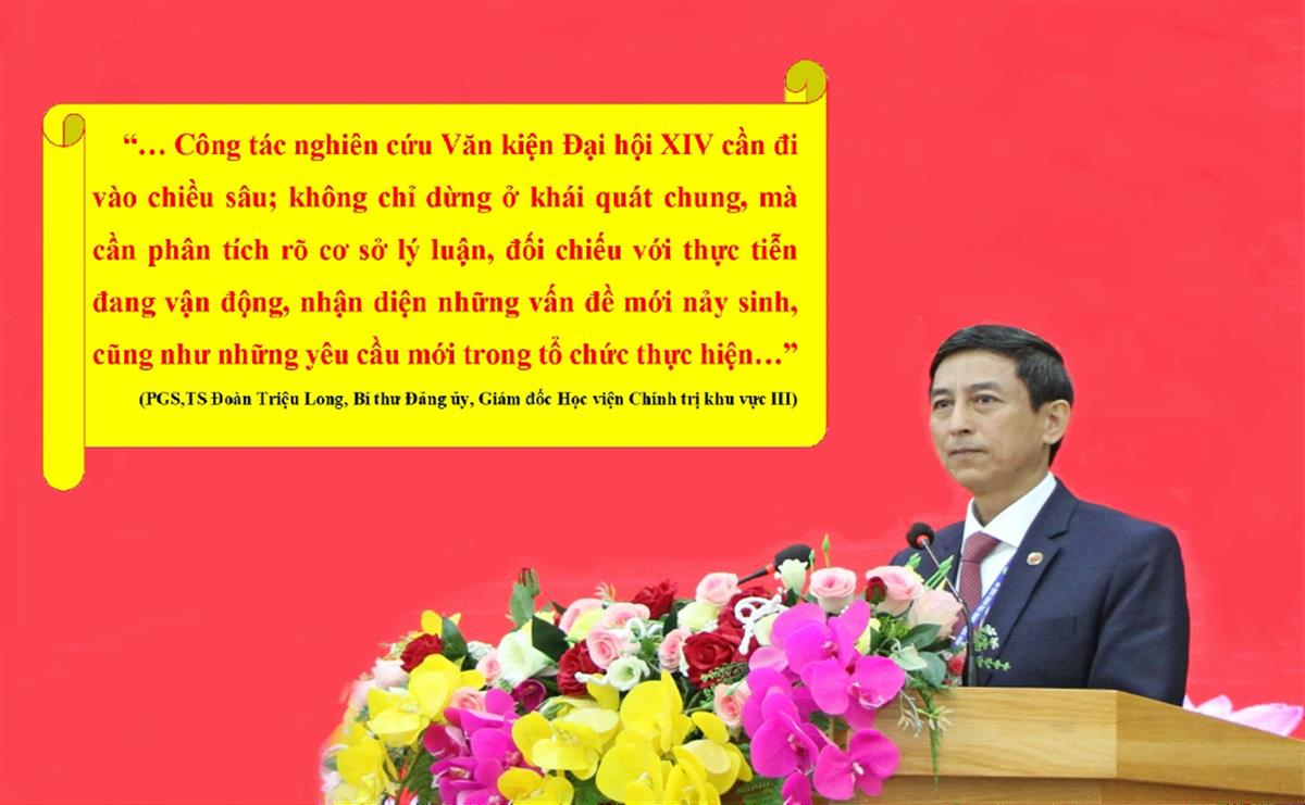 Nhấn mạnh tầm quan trọng của việc học tập, nghiên cứu và quát triệt Văn kiện Đại hội XIV, PGS,TS Đoàn Triệu Long khẳng định: Văn kiện Đại hội XIV không chỉ là đối tượng nghiên cứu của riêng một ngành, một lĩnh vực,... mà là vấn đề chung, có liên quan đến nhiều phương diện của đời sống chính trị, kinh tế, văn hóa, xã hội, quốc phòng, an ninh và đối ngoại. Việc nghiên cứu Văn kiện không chỉ là hoạt động học thuật mà còn là trách nhiệm chính trị của đội ngũ trí thức, góp phần làm rõ và phát triển nền tảng tư tưởng của Đảng. Mỗi công trình nghiên cứu phải gắn chặt với thực tiễn, cung cấp luận cứ khoa học cho hoạch định chính sách và tổ chức thực hiện thắng lợi Nghị quyết Đại hội. Bên cạnh đó, trong bối cảnh đấu tranh tư tưởng ngày càng phức tạp, các kết quả nghiên cứu còn góp phần định hướng nhận thức, củng cố niềm tin và tạo sự thống nhất trong toàn xã hội… Vì vậy, công tác nghiên cứu Văn kiện Đại hội XIV cần đi vào chiều sâu, cần phân tích rõ cơ sở lý luận, đối chiếu với thực tiễn đang vận động, nhận diện những vấn đề mới nảy sinh, cũng như những yêu cầu mới trong tổ chức thực hiện.