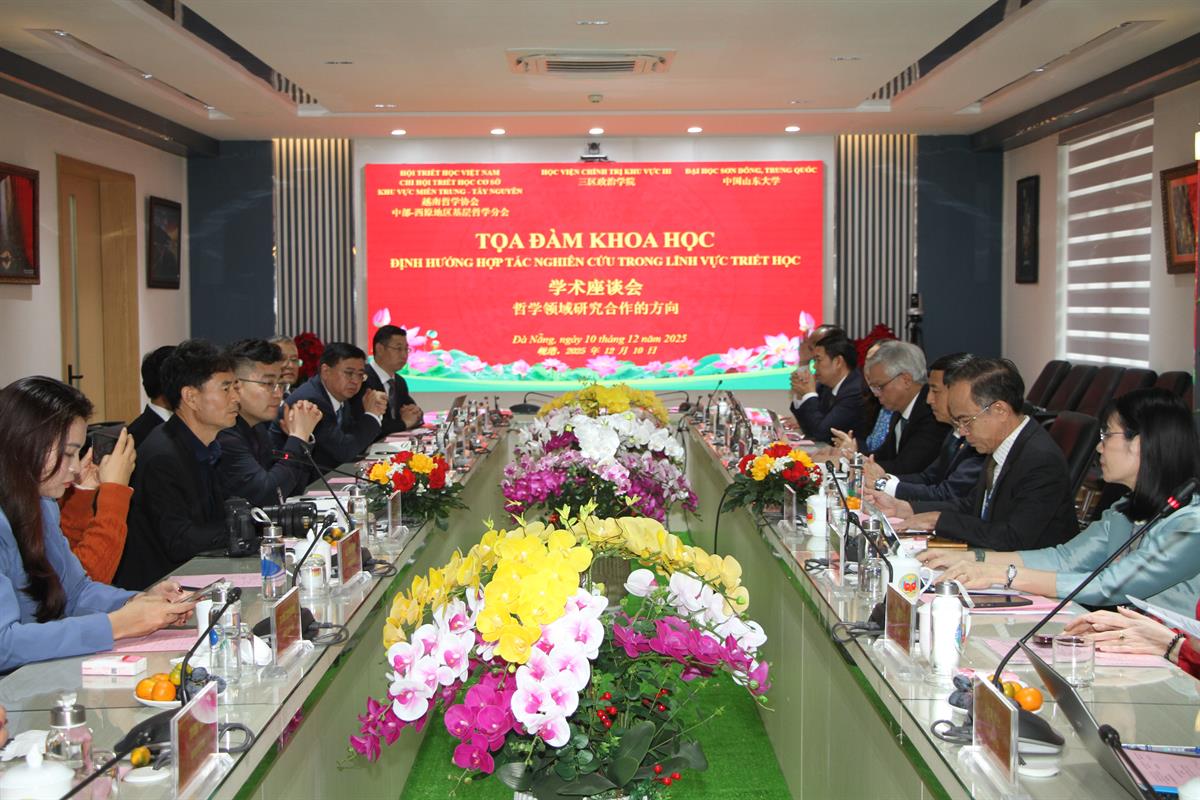 (HCMA3) - Sáng ngày 10 tháng 12 năm 2025, tại thành phố Đà Nẵng, Học viện Chính trị khu vực III và Đoàn Đại học Sơn Đông, Trung Quốc tổ chức toạ đàm khoa học với với chủ đề: “Định hướng hợp tác nghiên cứu trong lĩnh vực triết học”. Phối hợp thực hiện còn có Chi hội Triết học cơ sở khu vực miền Trung - Tây Nguyên