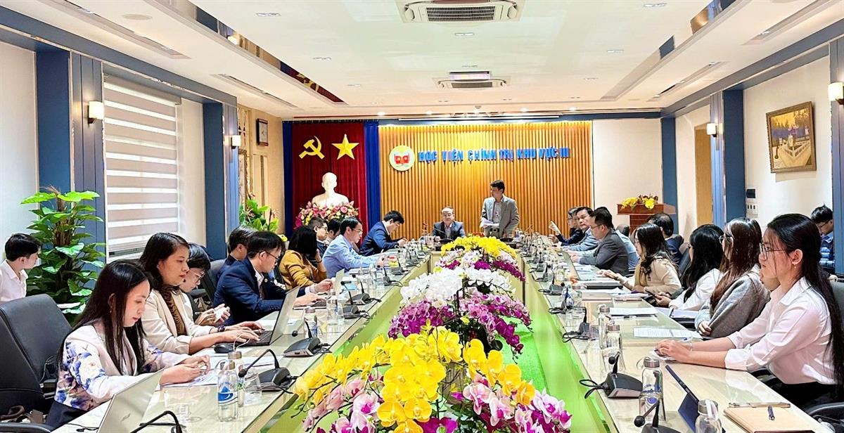 (HCMA3) - Thực hiện nhiệm vụ khoa học năm 2024, chiều ngày 16/12/2024, Bộ Biên tập Tạp chí Cộng sản phối hợp với Học viện Chính trị khu vực III tổ chức Hội thảo khoa học với chủ đề: “Thực hiện hệ mục tiêu “Dân giàu, nước mạnh, dân chủ, công bằng, văn minh” ở vùng đồng bào dân tộc thiểu số miền Trung - Tây Nguyên”. PGS,TS Nguyễn Ngọc Hà, Phó Tổng Biên tập Tạp chí Cộng sản và PGS,TS Nguyễn Ngọc Hoà, Phó Giám đốc Học viện Chính trị khu vực III đồng chủ trì Hội thảo.