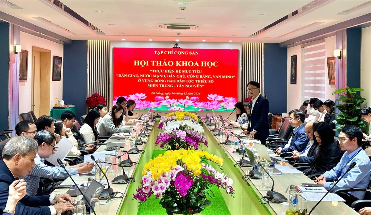Phát biểu đề dẫn Hội thảo, PGS,TS Nguyễn Ngọc Hà, Phó Tổng Biên tập Tạp chí Cộng sản khẳng định: Hội thảo là diễn đàn quan trọng để nhìn nhận, đánh giá quá trình thực hiện hệ mục tiêu “Dân giàu, nước mạnh, dân chủ, công bằng, văn minh” ở vùng đồng bào dân tộc thiểu số tại miền Trung - Tây Nguyên. Với ý nghĩa là hệ mục tiêu cho thời kỳ quá độ lên chủ nghĩa xã hội ở Việt Nam, để phấn đấu đạt được đều cần những bước đi, các mục tiêu cụ thể trong từng giai đoạn phát triển, thể hiện qua những kết quả sinh động trong thực tiễn, những cách làm sáng tạo của từng địa phương, ngành, lĩnh vực.